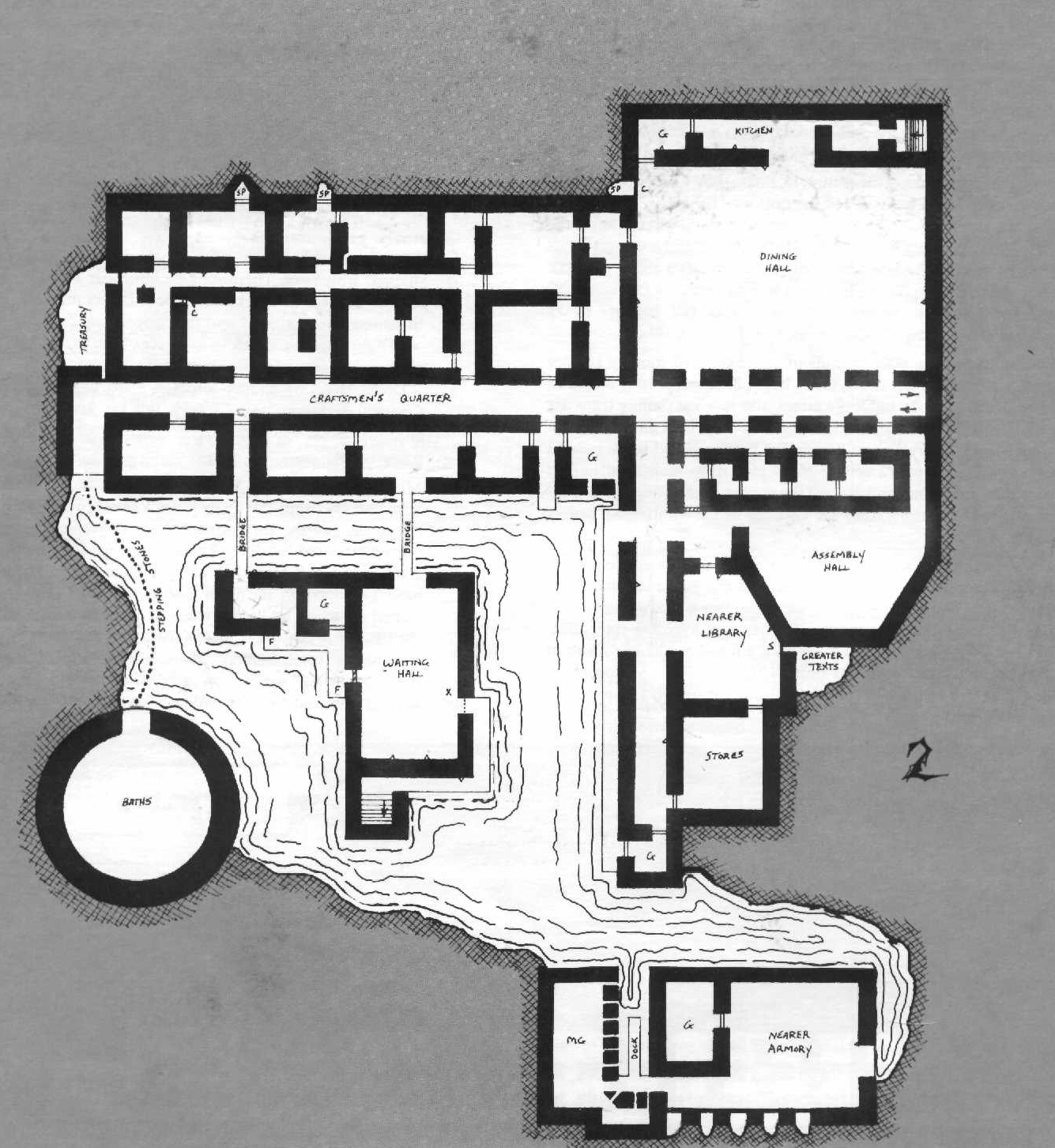 This is a great fortress layout, and easily used for any Rolemaster adventure or Shadow World stronghold. Here is just one cool level (must be by Terry):